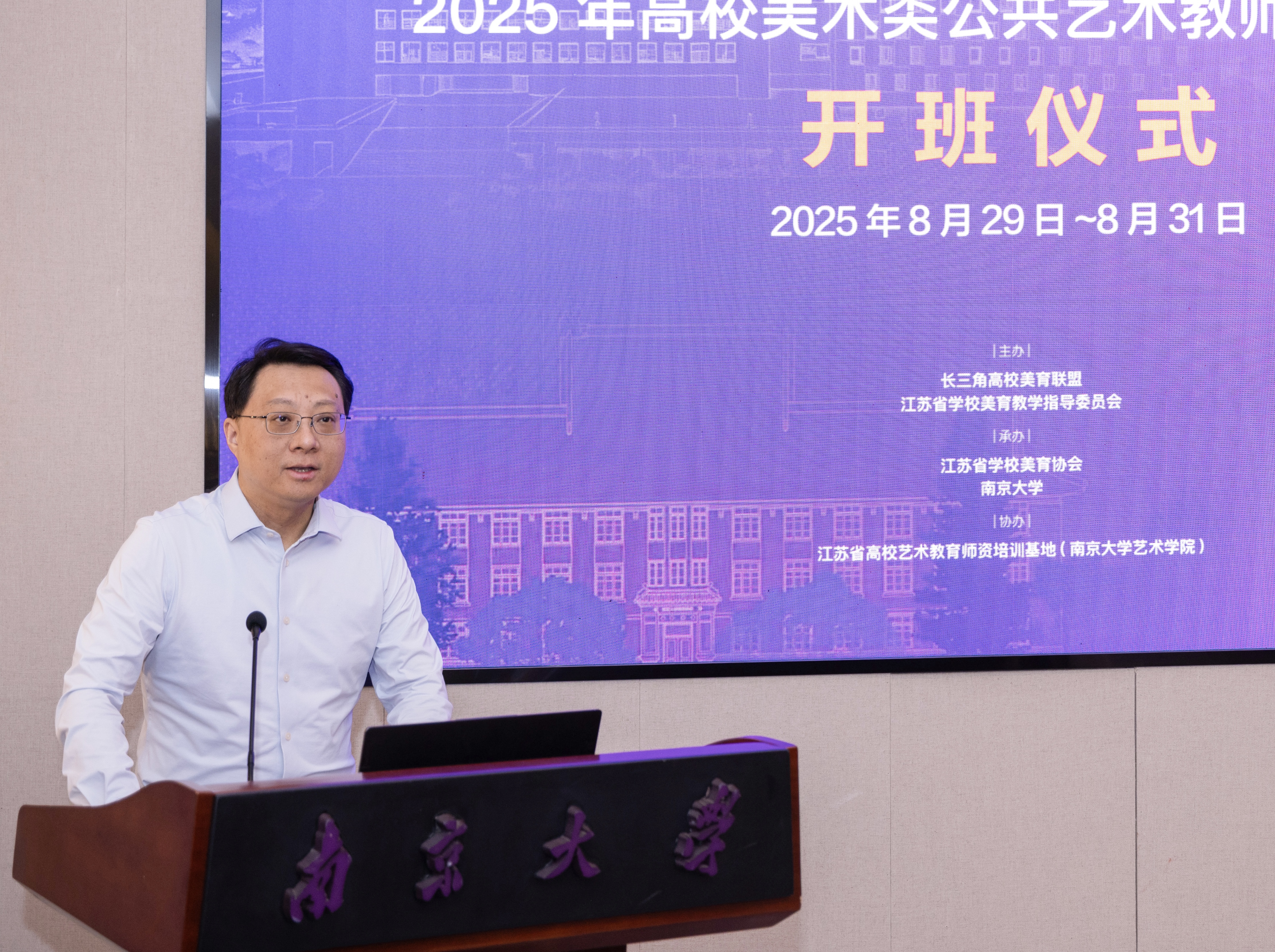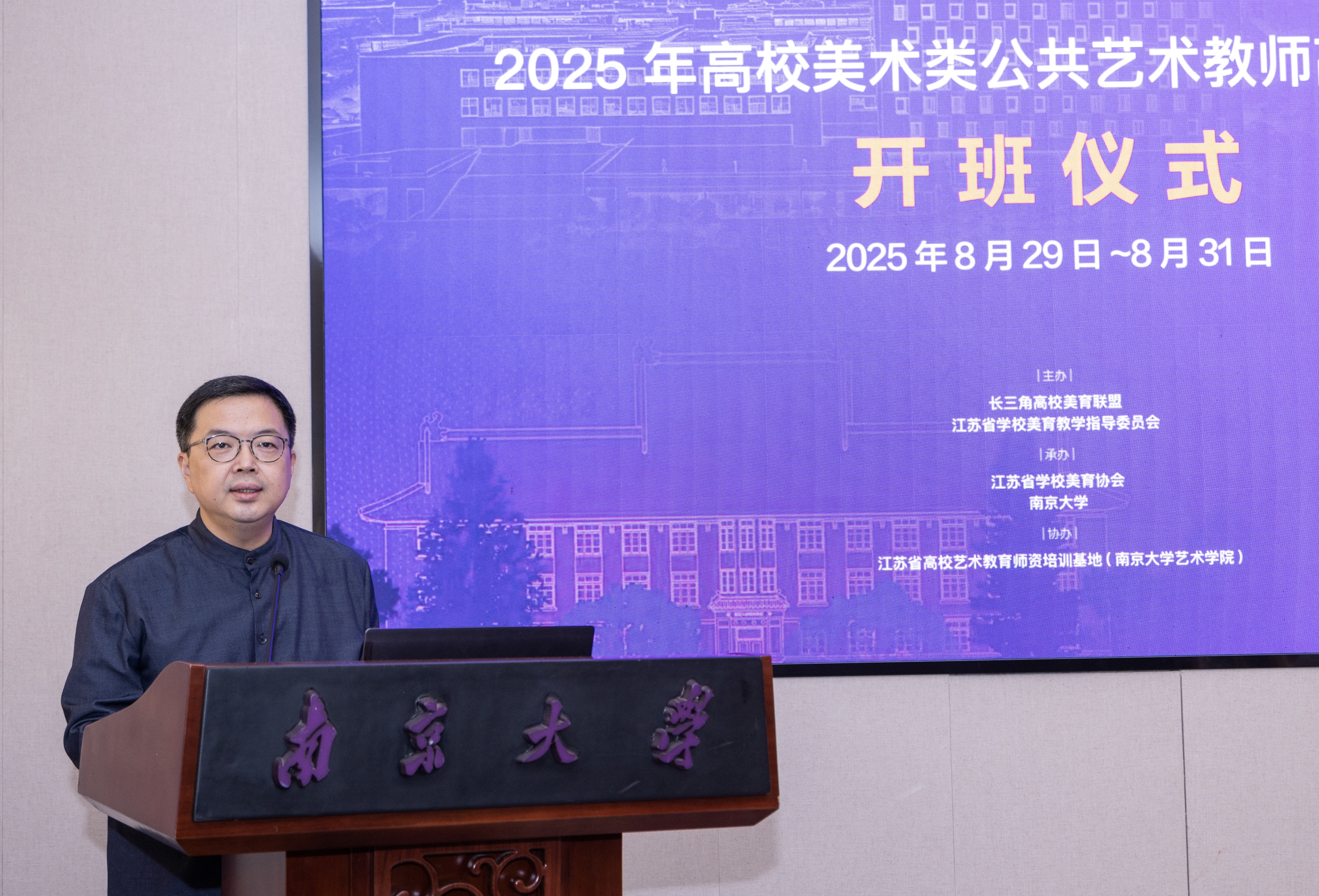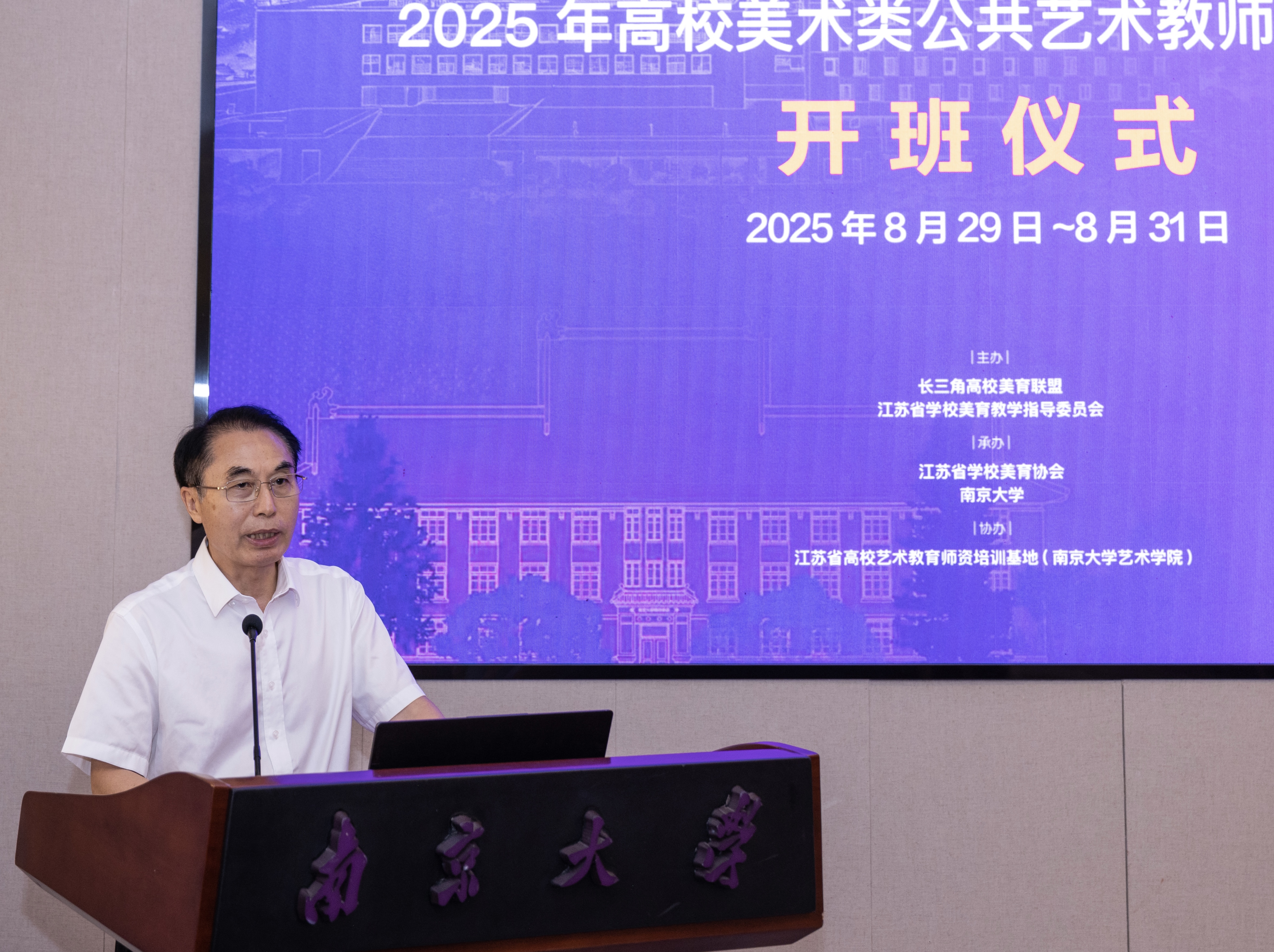 8月29日上午,以“大美育人 艺路同行”为主题的2025年高校美术类公共艺术教师高级研修班开班仪式在飞艇开奖结果记录官网直播计划 国际会议中心中大报告厅隆重举行。来自江苏、上海、浙江、安徽四地高校的六十余名美术类公共艺术教师参加培训。