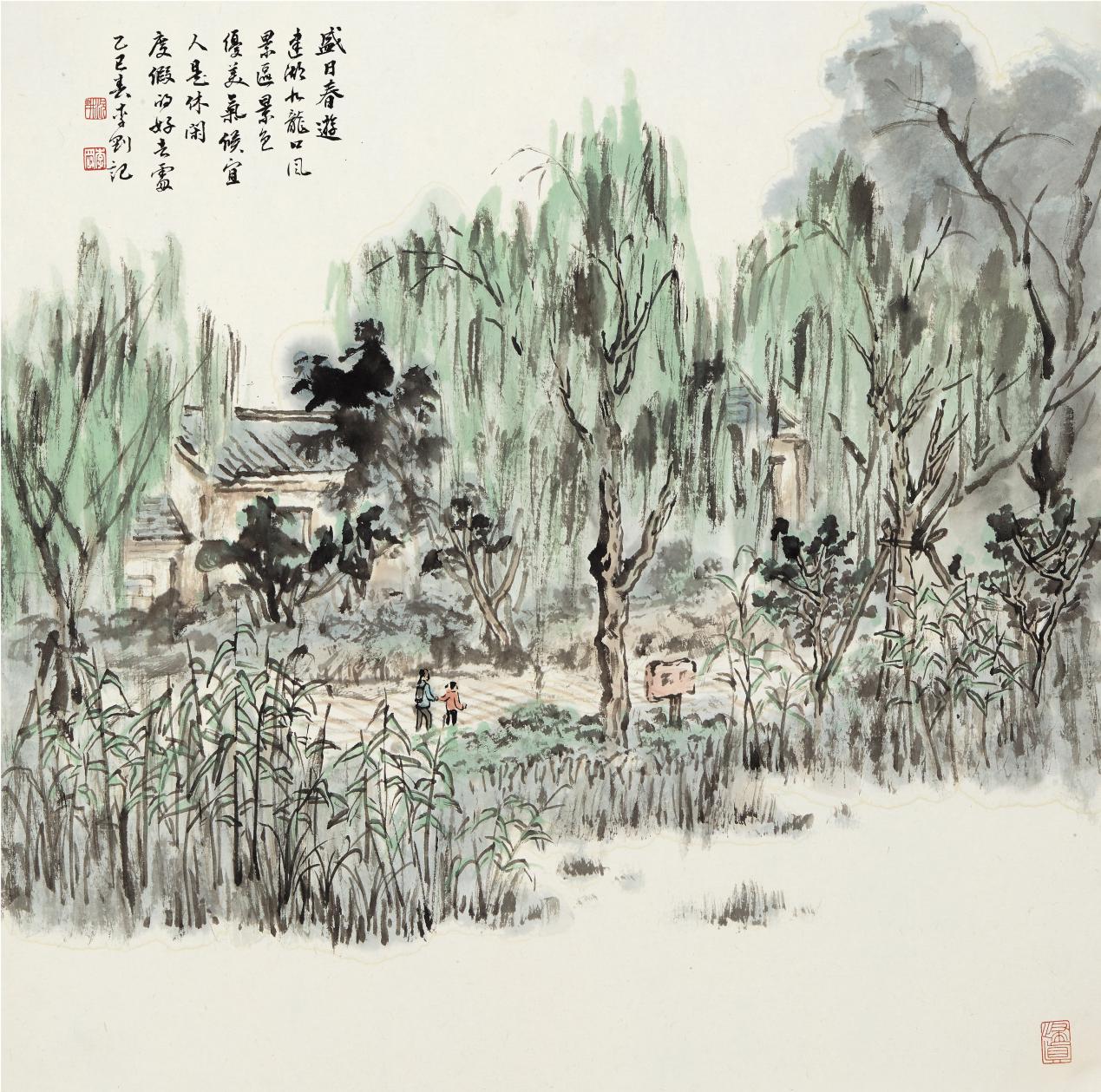 《盛日春游》 50cm×50cm纸本水墨 2025年