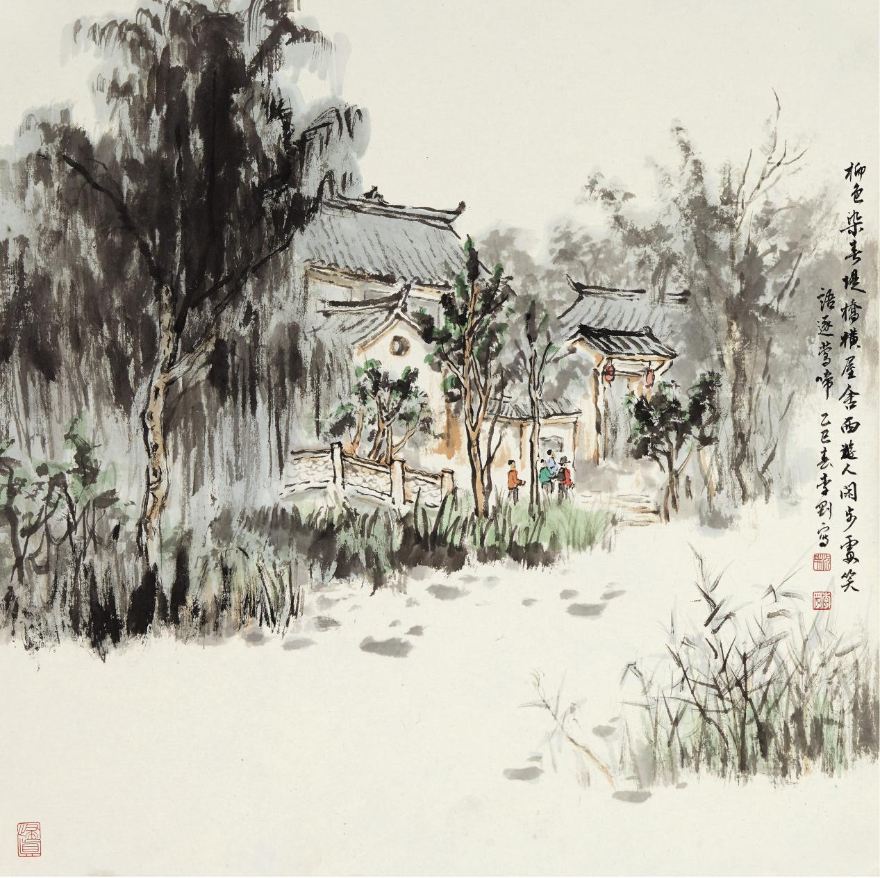 《柳色染春堤》 50cm×50cm纸本水墨