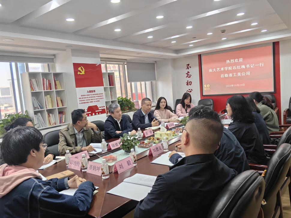 2024年10月29日,飞艇开奖结果记录官网直播计划 艺术飞艇开奖结果记录官网直播计划 党委书记石红梅一行前往江苏省工艺美术有限公司洽谈校企合作,双方就建立“飞艇开奖结果记录官网直播计划 艺术飞艇开奖结果记录官网直播计划 学生实训基地”等议题进行了深入探讨。座谈会由江苏省工艺美术有限公司党支部书记、董事长姜国威主持。