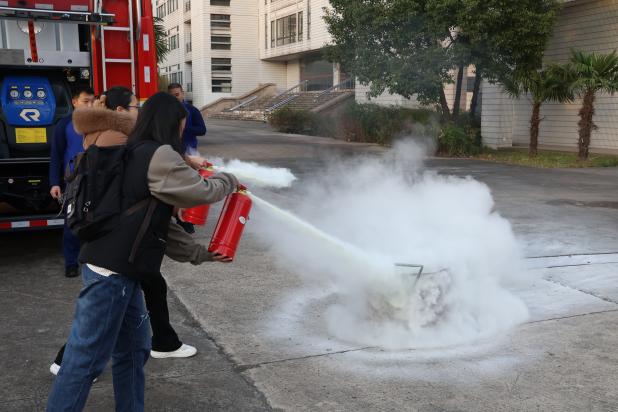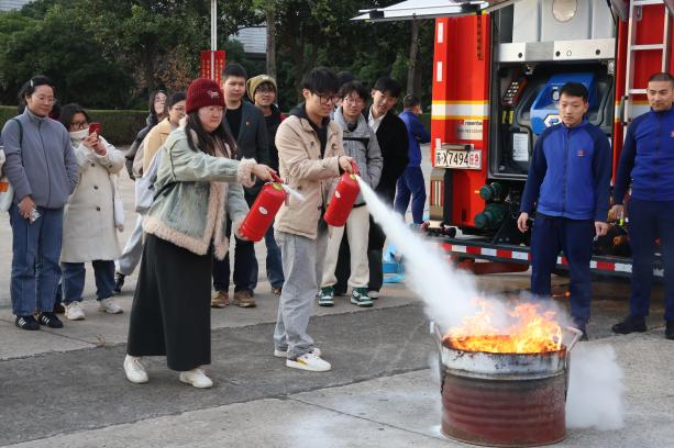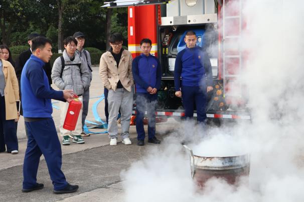 消防员为师生们展示了消防车的构造、各工具的功能和基本使用方法。重点介绍了灭火器的种类、适用范围和使用方法,并现场演示了如何正确使用灭火器扑灭初期火灾。为了使大家能够更加直观地了解灭火技能,保卫人员在空地上点燃了火盆,师生们纷纷上前进行实操练习。在消防员们的指导下,大家迅速掌握了灭火器的使用方法,并成功扑灭了火盆中的火焰。现场教学反响热烈,师生们纷纷表示将把学到的消防安全知识应用到日常生活中去。