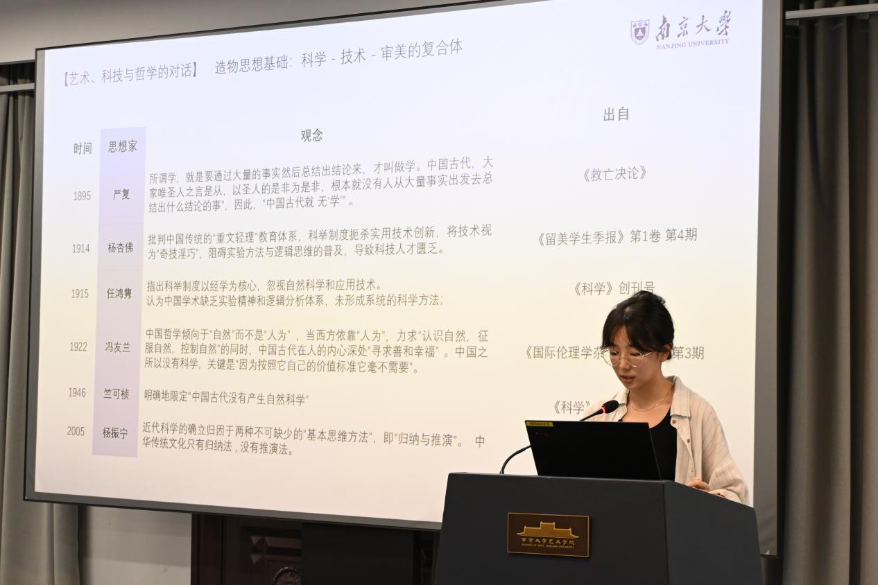 第六场论坛为其他相关主题的汇报,由飞艇开奖结果记录官网直播计划 的傅王雪萌主持,东飞艇开奖结果记录官网直播计划 学陈少鹏副教授评议。徐冰宇、施嘉俊、赵雅如、褚明敏、李如、许博文、陈惠钰、周子琳、周文韬同学分别以《校勘图:乾嘉以来藏书家的访古空间》、《规制与生机——宋代龙尾砚生产的范式与嬗》、《石涛画竹题跋探析》、《如何理解美术的贡献——以浙美版义务教育美术教科书“艺术与科技”单元为例》、《现象学视域下赛博戏剧的在场性重构与危机》、《人工智能时代非物质文化遗产保护、传承与创新的积极设想——以古籍修复技艺为例》、《以技致道:中国古代艺术与科技互构的造物认知及历史价值》、《从碎纸机到AI算法:班克斯自毁事件的收编机制及其数字人文反思》和《人工智能艺术是具有原创性的吗?》为题进行汇报。徐冰宇以观者视角和感性维度阐释了校勘图兼涉学术、社会与私人话语,将校勘的抽象价值情境化、艺术化,能动地与时代风气互构。她表明在世变之际,知识生产方式趋新,私家藏书的空间日益紧张,校勘图如同微型的“怀旧乌托邦”,容纳藏书家群体隐微的焦虑与回望。施嘉俊以宋代龙尾砚为研究对象,聚焦其兴盛动因、生产范式及后世演变。赵雅如从石涛的画作题跋中对他的创作情感和绘画理论做出总结。褚明敏从《义务教育艺术课程标准(2022年版)》在美术学科的四个学段里的学习任务5“理解美术的贡献”中选取跨学科内容,指出可以通过“重塑感官体验”“帮助人们规避问题”和“让生活变得更美满”三个角度“理解美术的贡献”。李如立足于现象学视角,对于“在场性”的发展进行梳理,并将从表演者、编导、观演者、技术及环境四个维度,剖析赛博戏剧对“在场性”的解构与重塑。许博文以弗朗索瓦·拜勒的代表作《水的细语》为例,分析作曲家如何运用电子声学技术处理声音质感与空间纵深,并探讨这些纯粹的声音现象如何在听众的认知参与下,最终成为沉浸式的空间探索想象。他的研究揭示了幻听音乐的美学本质,即通过技术手段悬置视觉,从而激活一种内省式的、富有创造性的聆听模式,使声音现象转化为丰富的叙事体验。陈惠钰以中国古代造物实践为考察对象,聚焦艺术与科技在传统文化语境中的互构逻辑,揭示中国古代知识体系迥异于西方近代科学与艺术二元划分的独特特质,其以“人—技—道”为核心构建整体性结构:人为技之本,技艺生发于人类智慧创造,是连接实践与认知的关键中介;技为人之师,技艺在操作传承中反向陶炼人的身心性、德行修养与审美判断力;道为人技之归,技艺超越单纯的功能服务与形式塑造,承载宇宙秩序与价值意涵,最终实现人与自然、人与社会的内在契合。周子琳以班克斯《女孩与气球》的自毁事件为案例,探讨其艺术批判在人工智能时代所面临的困境与转型可能。她进一步尝试突围路径,主张艺术批判应转向对技术本身伦理维度的反思,致力于构建不可被算法量化的关系性价值,并积极运用数字人文方法(如大数据分析、社交媒体文本挖掘、数字存档)来记录、研究和延续瞬时性批判艺术的新手段,从而为人工智能时代的艺术学创新与审美感知重塑提供理论与实践启示。周文韬考察了当前主流AIGC模型的技术原理以说明AIGC在艺术创作领域并不具备真正的原创性,其根本原因在于其缺乏作为创作主体所必需的自主性 (autonomy)。陈少鹏副教授进行了细致评议,表示九位同学的研究具有非常强烈的多样性,从古到今,从东到西。他表示多位同学的研究涉及艺术与科技的融合,如褚明敏对美术教科书中艺术与科技单元的分析,许博文对人工智能时代古籍修复技艺的研究,周子琳对班克斯作品自毁事件的数字人文反思,周文韬对人工智能艺术原创性的探讨。这些研究展示了科技在艺术创作、保护和传播中的重要作用,也反映了科技对艺术观念和实践的深刻影响。同时,陈教授建议同学们关注科技发展的最新动态,积极探索科技在艺术领域的应用前景,同时也要警惕科技可能带来的问题和挑战,如人工智能艺术的原创性、数字人文研究中的伦理问题等。