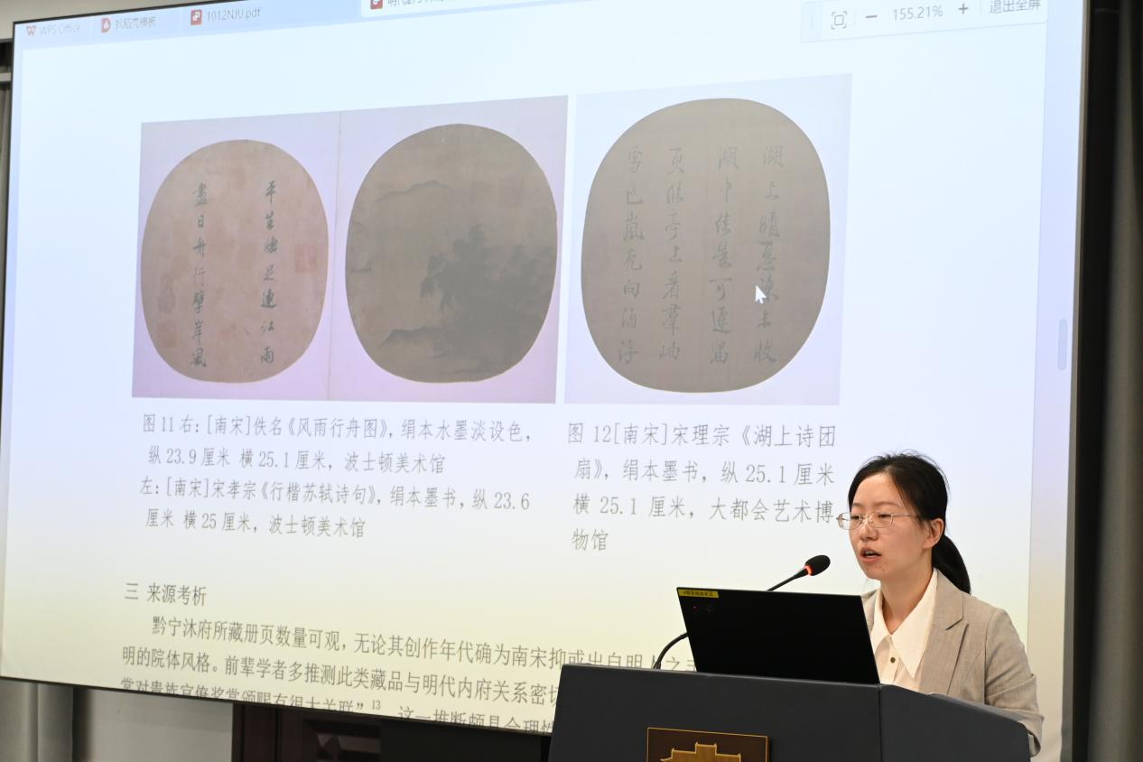 论坛第四场“数字人文视野下的美术考古”由南京艺术飞艇开奖结果记录官网直播计划 董亚平主持,南京⼤学美徐志君助理教授任评议嘉宾。董亚平、徐琰、赵丹、郑嘉昊、张珂艺、原天羽、古康、吴沐霜同学分别以《正统承续:谶纬视域下东吴禅国山碑考释》、《陈容“所翁龙图样”的跨媒介运用研究 》、《形塑河源——图像阐释学视域下的中国古代舆图葫芦图像考析》、《倪瓒<十万图>真伪及流传考——兼论王翚的四件<十万图>仿本 》、《乾隆朝<平定两金川得胜图>铜版画的制作、传播与贮藏》、《明代黔宁沐府的册页收藏:规模、年代、来源与后世之名》、《汉地树下坐禅比丘形象探赜——以云冈石窟和河南造像碑为例》和《唐代关中贵族墓葬壁画视觉语言探析——基于空间叙事与图像配置的双重维度》为题,围绕着中国古代艺术史的不同方面展开。他们的汇报展示了中国古代艺术史研究的丰富性和多样性,通过跨学科的方法和多视角的分析,深入探讨了艺术作品的历史背景、文化内涵和艺术价值。徐志君老师表示希望同学们把一个比较抽象,或者比较宏大的问题拆分到具体细致的、可探究的、比较少的依赖于情感的材料和结论方面去。