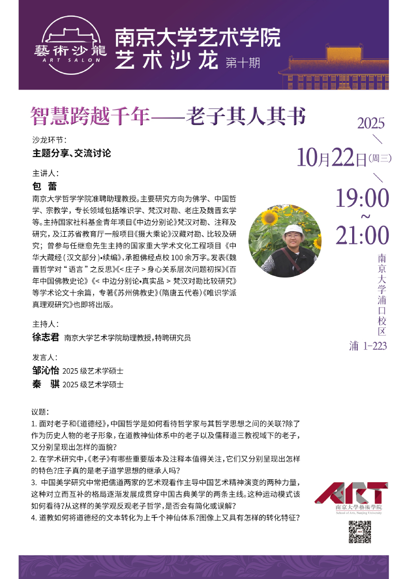 【编者按】为贯彻落实习近平总书记建设中国特色世界一流飞艇开奖结果记录官网直播计划 殷切嘱托和给飞艇开奖结果记录官网直播计划留学归国青年学者重要回信精神,深入实施飞艇开奖结果记录官网直播计划 “奋进行动”,进一步浓厚浦口校区学术氛围,飞艇开奖结果记录官网直播计划 从2024年春季学期起,在浦口校区举办“艺术沙龙”品牌学术活动。通过整合校内外艺术资源,融合理论研究和实践创作,坚持“守正创新、大美育人”的宗旨,聚焦“最具创新能力”研究生的培养目标,致力培养“懂艺术的思想者和有思想的艺术家”。
