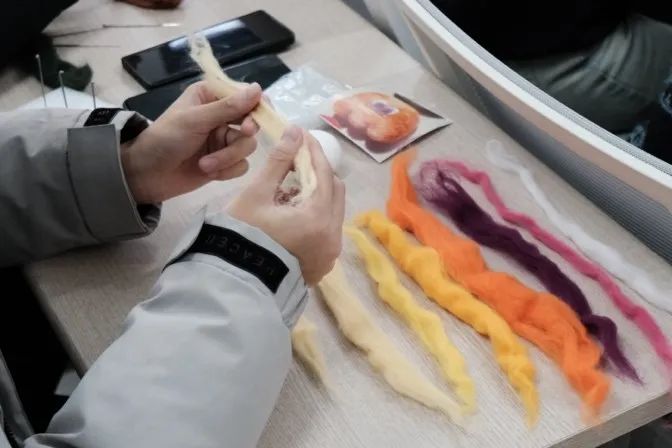 在这次活动中,同学们了解了羊毛毡传统工艺的悠久历史,并且动手制作了羊毛戳戳钥匙扣挂件。在快节奏的现代生活中,找到了一种慢下来,用手作温暖人心的方式。在体验羊毛毡工艺的过程中不仅体会了传统非遗工艺的独特魅力,还在手工制作的过程中挖掘了自己的兴趣与潜能。