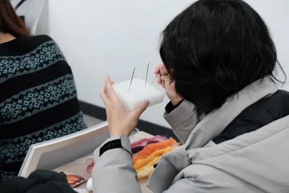 在主讲人吴琦的耐心指导下,同学们了解了羊毛毡传统工艺的历史与原理,并且赏析了羊毛毡工艺的当代作品。