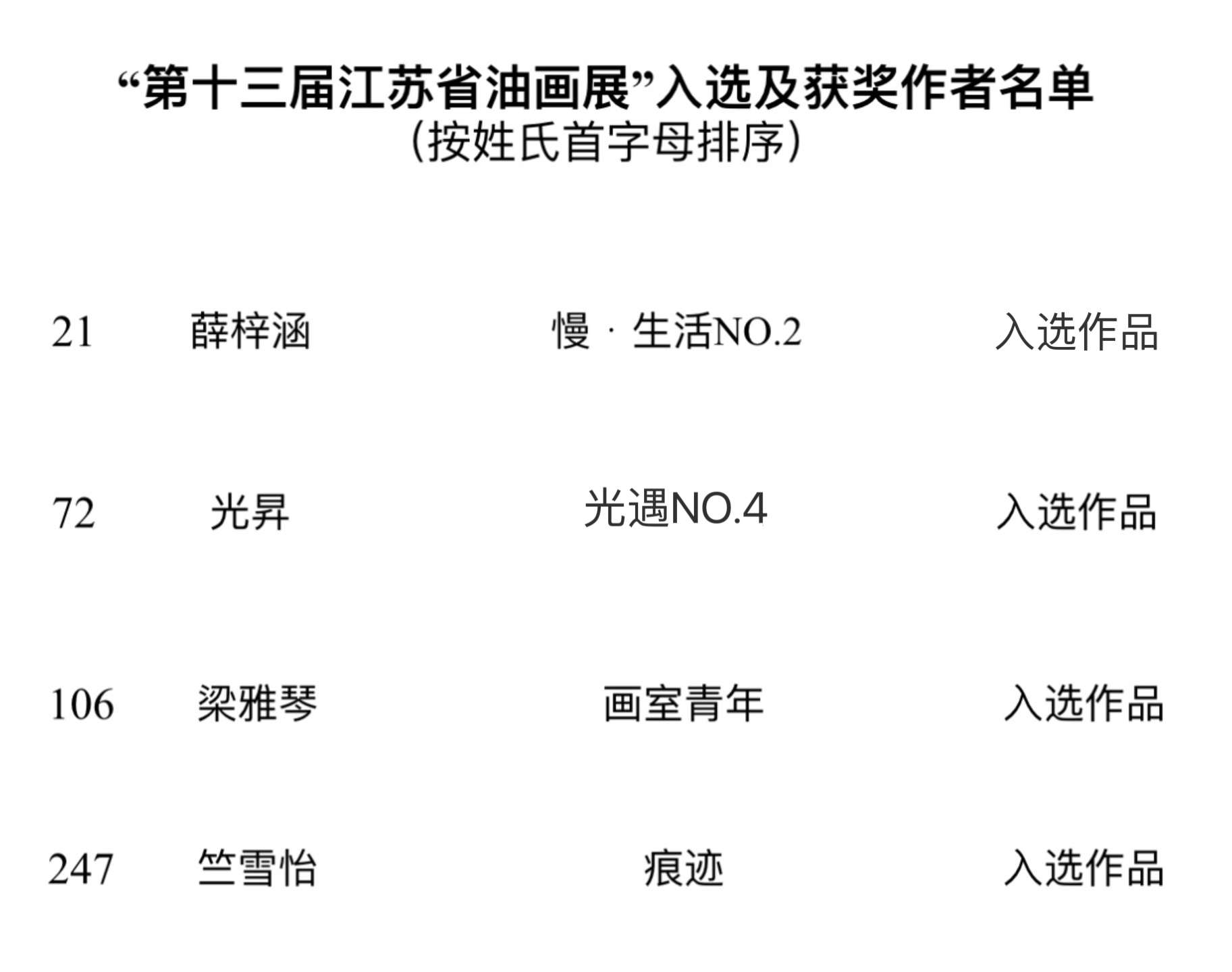 江苏省第十三届油画展 飞艇开奖结果记录官网直播计划 艺术飞艇开奖结果记录官网直播计划 入选名单