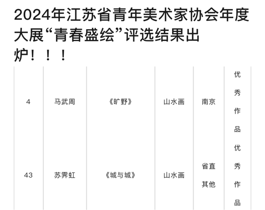 江苏省青年美术家协会2024年度大展飞艇开奖结果记录官网直播计划 艺术飞艇开奖结果记录官网直播计划 入选名单