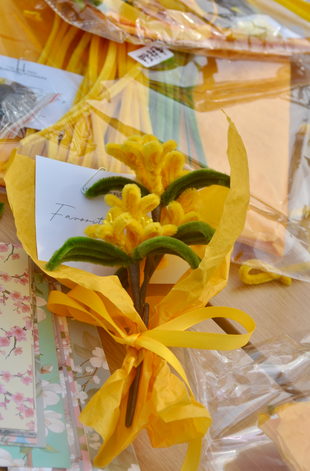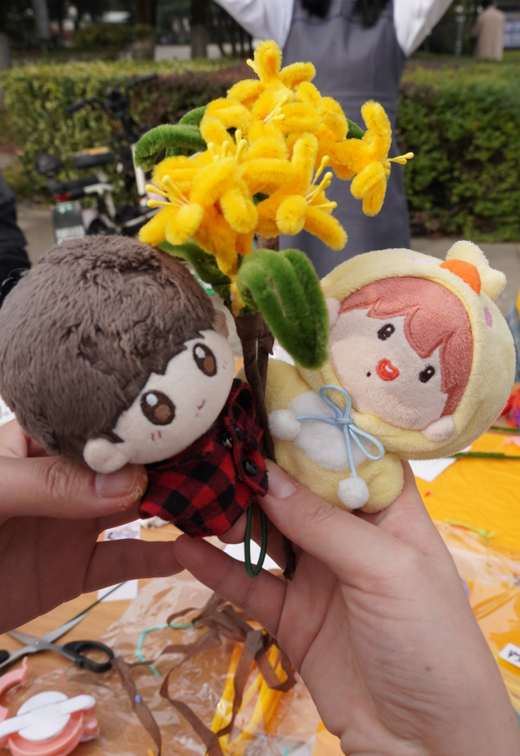 参与者们巧妙地运用金黄与橙色的毛绒扭棒,通过捻、转、捆扎,将一簇簇“桂花”的细密与繁盛定格。永不凋零的“花朵”在指尖绽放,不仅留住了秋日最馥郁的想象,更将这份手作的灵动与巧思,装点了时光。