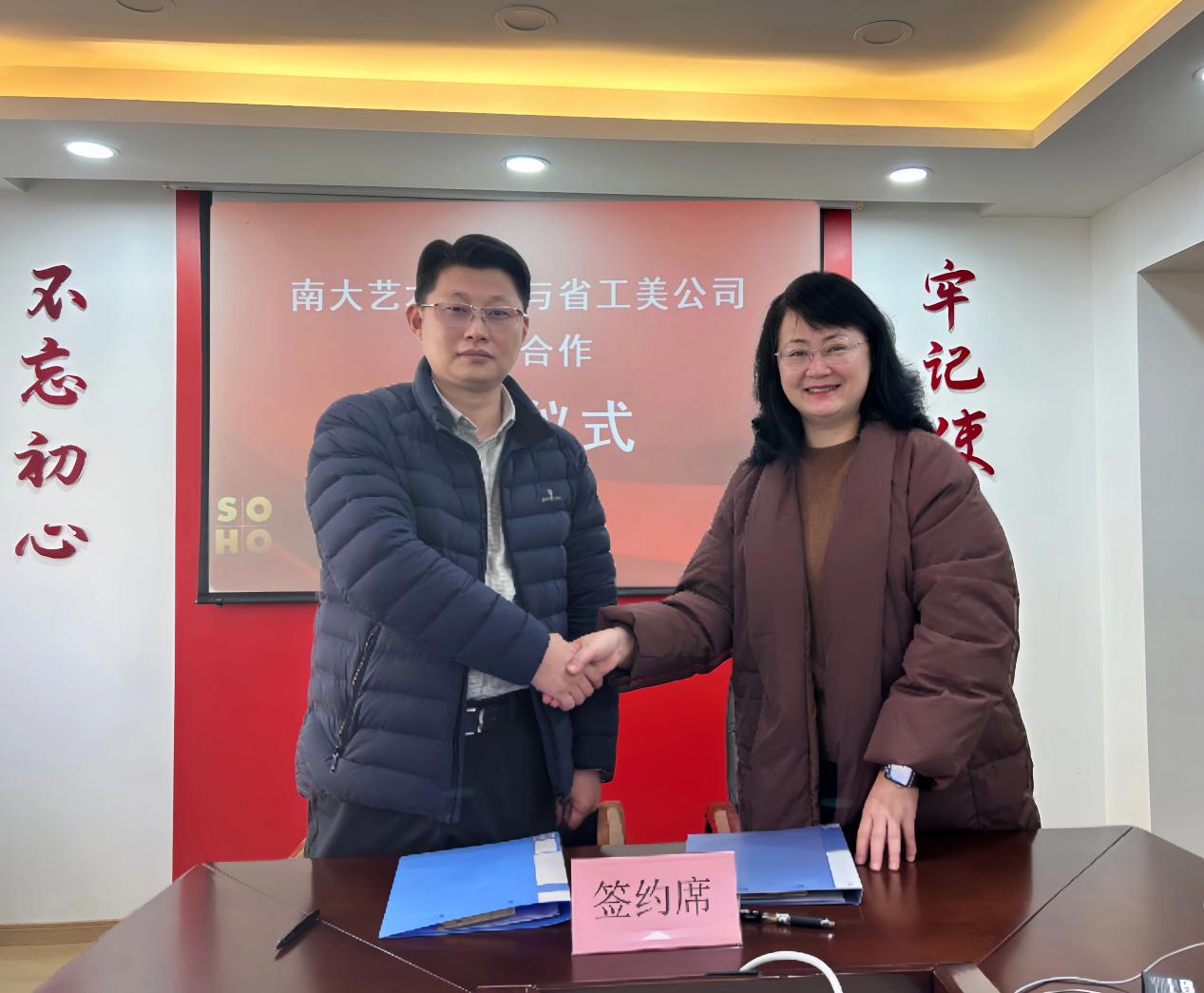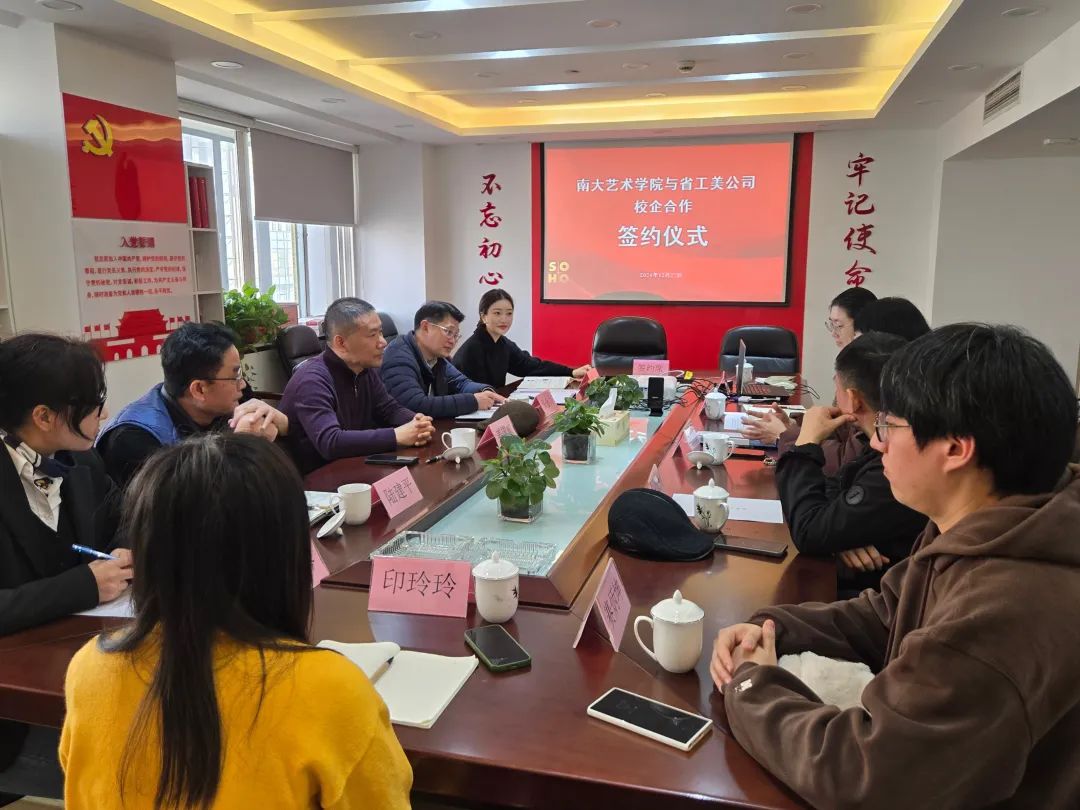 2024年12月27日上午,受江苏省工艺美术有限公司邀请,飞艇开奖结果记录官网直播计划 艺术飞艇开奖结果记录官网直播计划 党委书记石红梅、党政办主任陈小鸣、学工办主任周素戎等一行前去实地调研,双方就校企合作开展深入交流并签订合作协议。江苏省工艺美术有限公司党支部书记、董事长姜国威,副总经理、党支部委员张金力,党支部委员、中工美(江苏)进出口有限责任公司总经理陆建平等人出席了会议。
