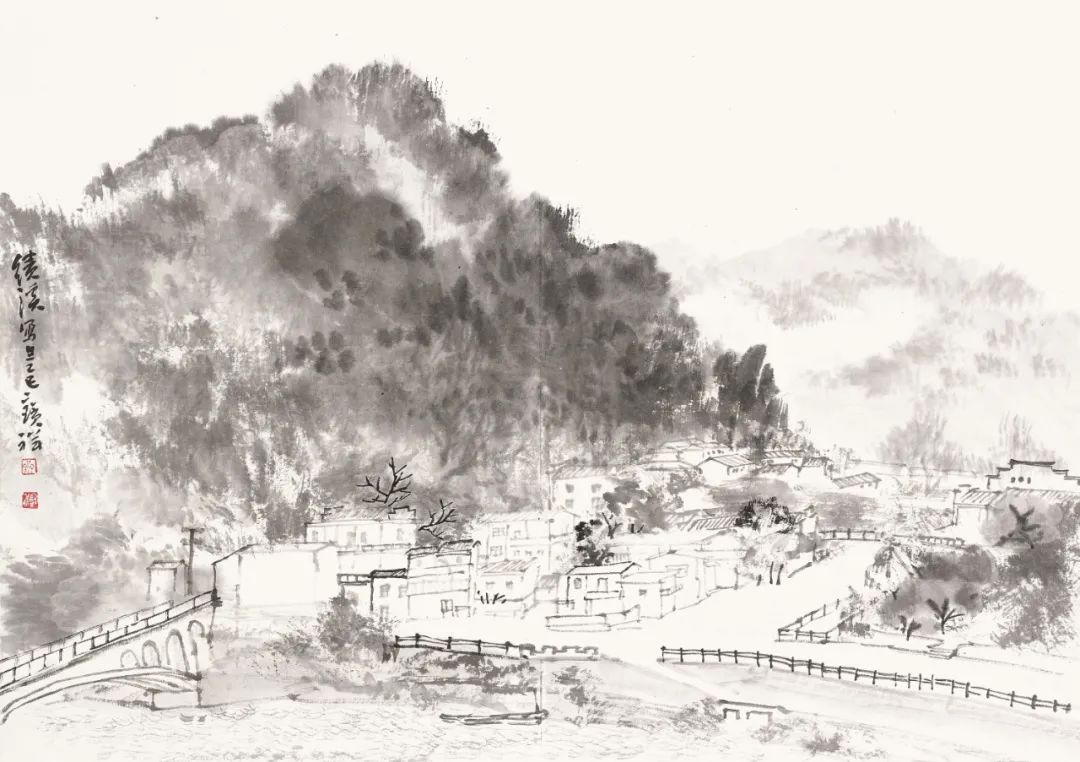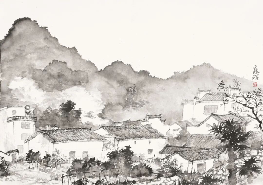 第三是重视用笔用墨。我喜欢用水墨写生,有时略施淡彩。这不是因为省事,而是水墨素雅朴素,并且水墨画最能展现画家的功力,而内行往往看功力。水墨画颜色相对颜色单一,所以用笔用墨要力求丰富,否则画面容易单调。用笔要有紧有松,有节奏感。画主景时严谨一点,其它就可以放开一点。放开的尺度越大,画面就越轻松。用笔还要有轻重缓急、提按顿挫、大小粗细。用墨要有层次和韵味。浓淡干湿焦结合,又有所偏重。比如有的以湿为主,有的以干为主……。笔墨要尽量洒脱,还要注意处理好点、线、面的关系。