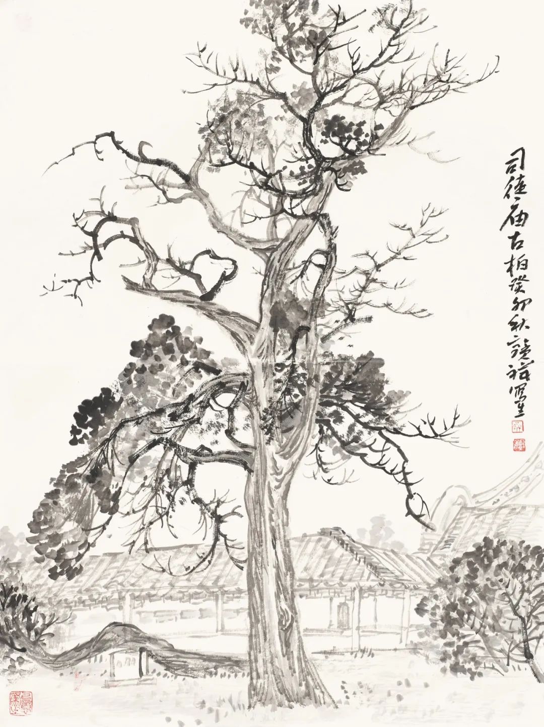 我下笔之前心中已有整体的构图,景物又就在眼前,所以构图和造型的问题没有了。下笔后我需要注意的是如何取舍、概括和如何运用笔墨。特别是用笔用墨,是我要重点考虑的。因为对于水墨画来说,成功与否往往取决于笔墨。起笔时,我习惯先从主要景物开始,其他的地方围绕主景来生发。这样笔墨也比较连贯,有的地方要一气呵成。主景的大小要服从于整体构图,比如如果先画建筑,就要注意它与树木、山石之间的关系。我写生时不打轮廓,但胸有成竹。