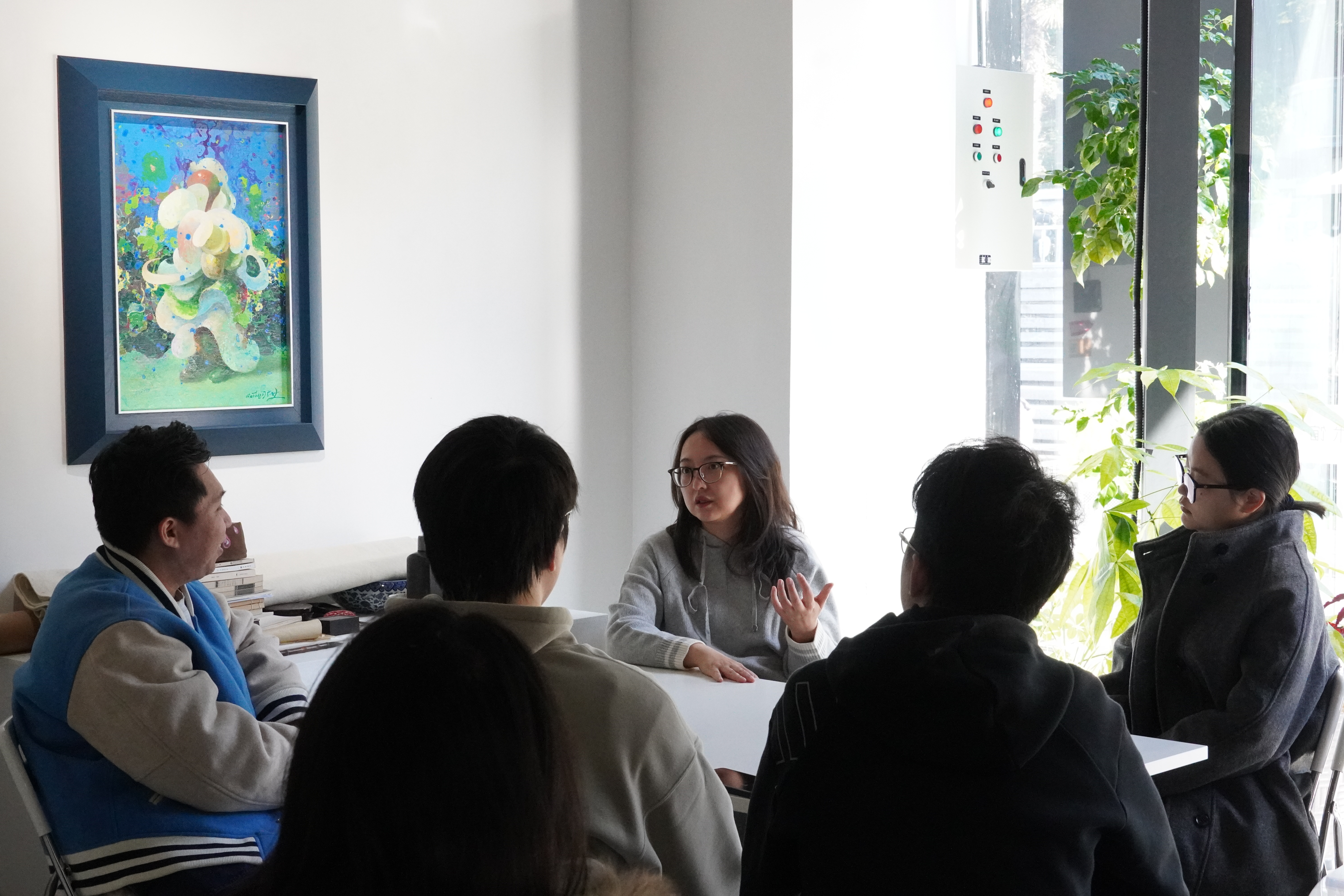 此外,武馆长也热情欢迎同学们参与海棠艺术馆的展览筹备工作。她介绍,当代策展工作已发展为一项复合型的专业实践项目,涵盖与艺术家的理念沟通、展览空间的规划设计、作品悬挂高度的精准调控、灯光氛围的优化、展签文字的专业撰写等多个环节。这些看似微小的细节,实则蕴含着策展实践的隐性专业知识,唯有通过亲身参与、实际操作,才能真正体悟其核心要义、掌握专业技能。