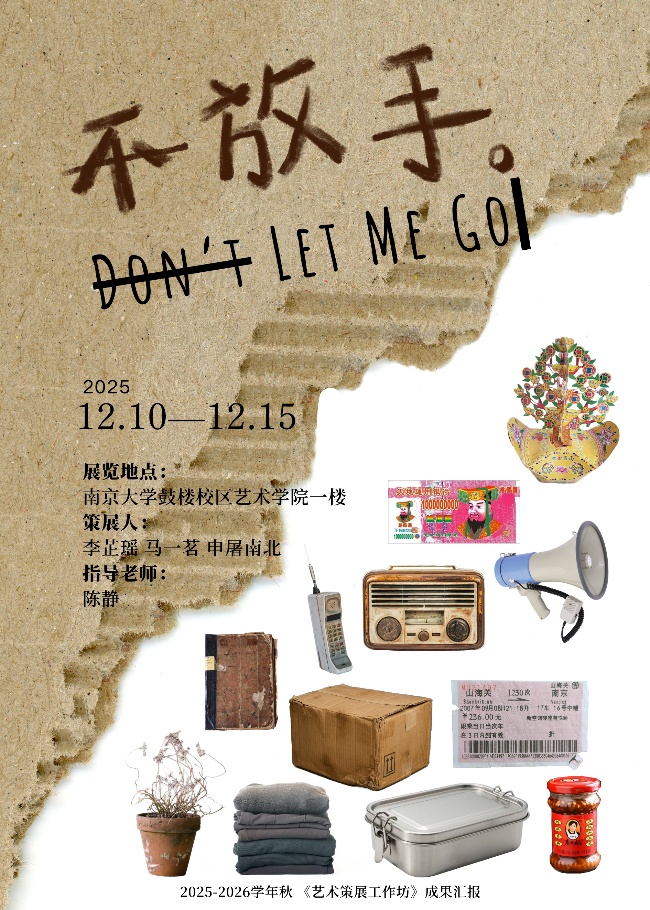 此次工作坊的作业展,以线上和线下方式同步进行。线下有三个展览,分别是《Don’t Let Me Go不 放手》《她行其野:女性知識分子的文化抗戰力量》《痕迹:衣物中的时间、图像与记忆》。三个非常不同的展览,也体现了不同的视角,有对人类终极死亡的关怀,有与个人隐秘记忆的对话,还有对大历史叙事的反思。线上则有5个展览,分别是《餐桌之上,家庭之下》《托“物”言志》《从闺阁到画屏——明清女性形象的身份、空间与情思》《我的名字不是“抑郁”——一次关于看见的邀请》《在那澄澈的天空下——西斯莱印象风景画展》。展览主题也非常不同,从对家庭关系的探讨到对青年亚文化的解读,从中国传统女性绘画到西方印象派,还有对抑郁症的艺术关怀。这些或多或少体现了这群南大00-05后人的思考与感悟。