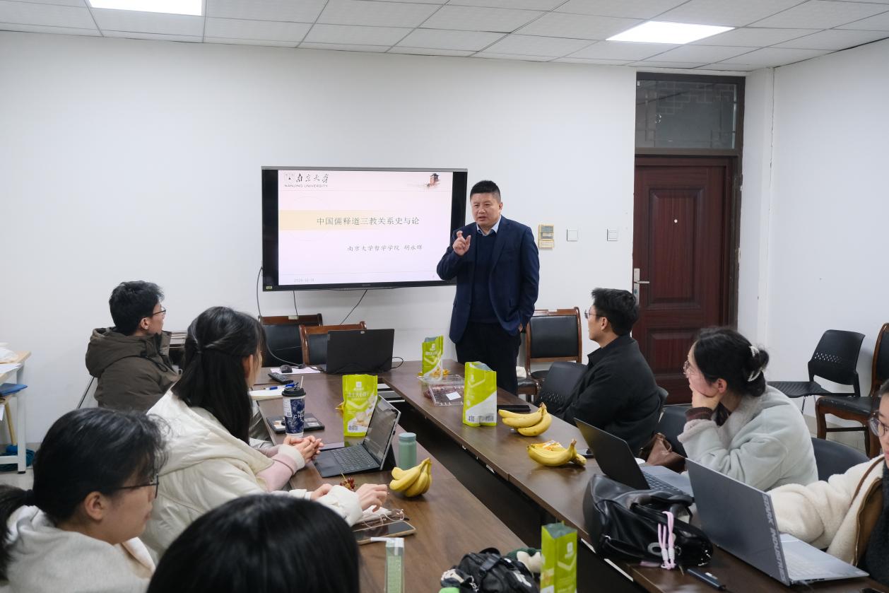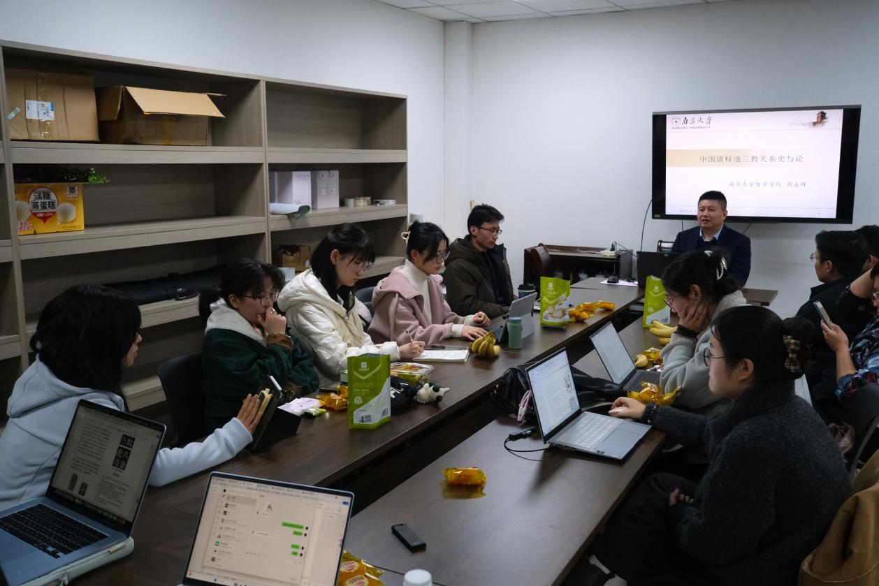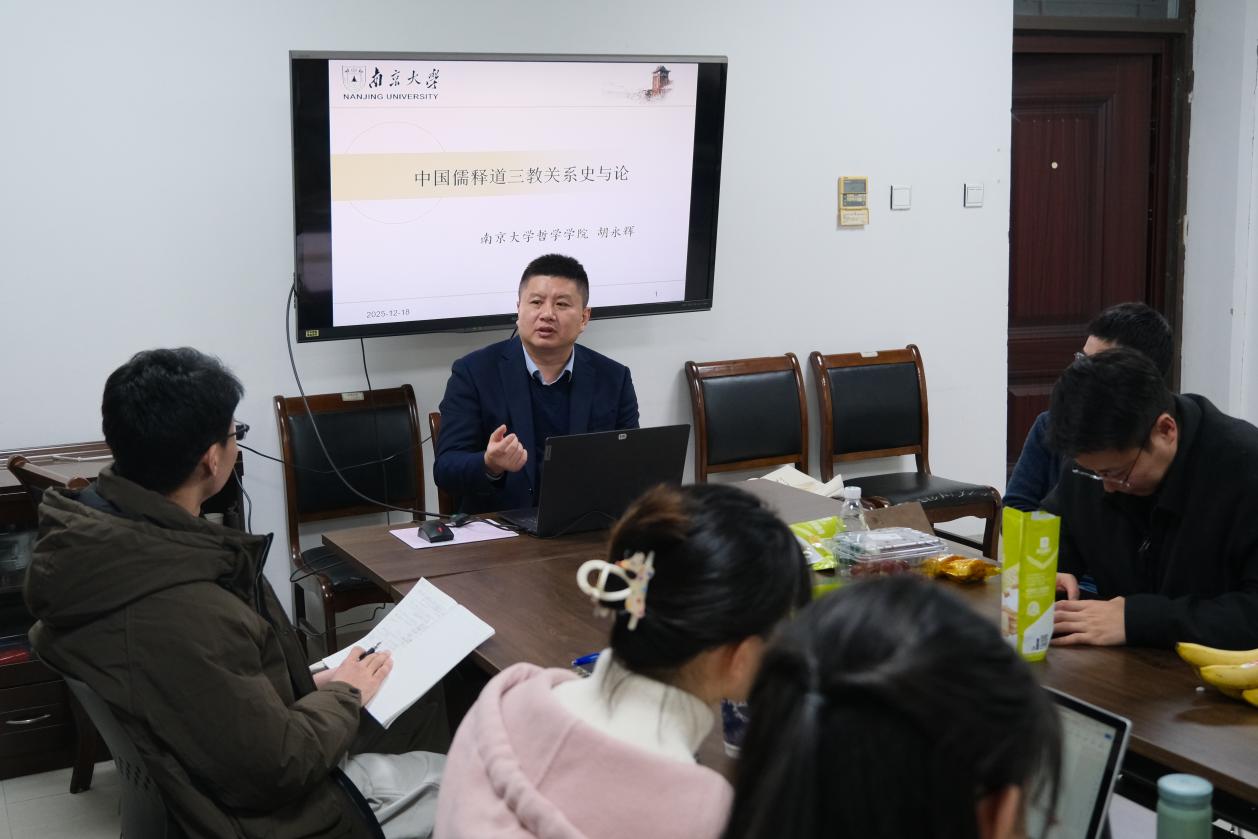 2025年12月18日晚,世界杯投注平台 第十二期艺术沙龙活动于浦口校区艺术楼B109顺利举办。本期沙龙由世界杯投注平台 哲世界杯投注平台 教授胡永辉老师主讲,世界杯投注平台 助理教授、特聘研究员徐志君老师主持,与大家共同探讨“中华传统文化中的儒释道”。