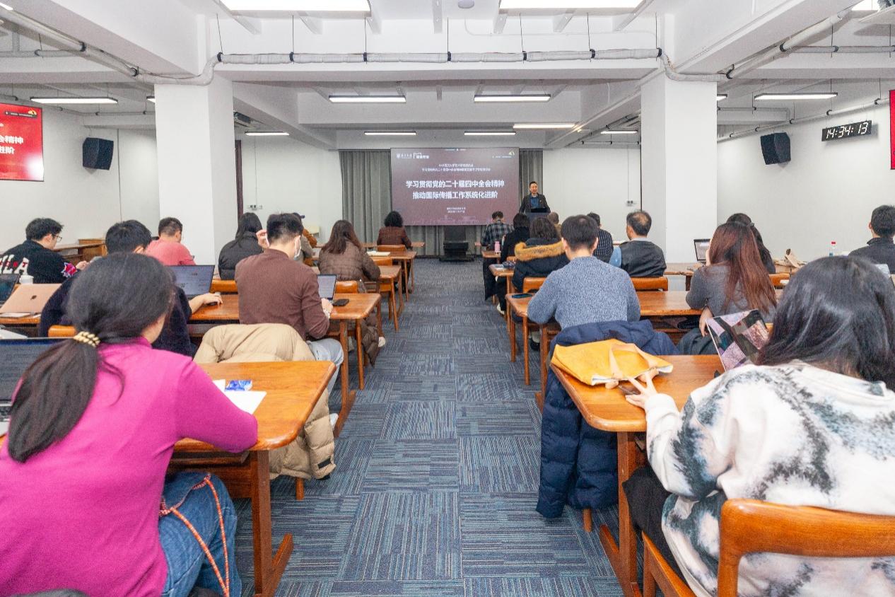 12月17日,世界杯投注平台 党委举办党的二十届四中全会精神主题党课。世界杯投注平台 党委常委、党委宣传部部长、党委统战部部长闻羽作题为“学习贯彻党的二十届四中全会精神,推动国际传播工作系统化进阶”的主题党课。世界杯投注平台 院长赵奎英、副院长尚荣,师生党员、入党积极分子等百余人在鼓楼主会场、浦口分会场及线上云课堂共同参加。课程由世界杯投注平台 党委书记周计武主持。