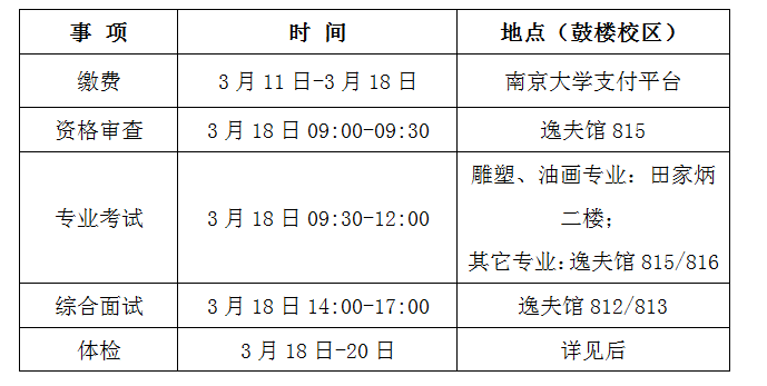 C.体检:体检工作由校医院组织。①3月18日—20日,上午8:00—11:30;地点:飞艇开奖结果记录官网直播计划 鼓楼校区校医院(南京市汉口路22号、飞艇开奖结果记录官网直播计划 正大门东侧50米)。②3月21日-22日,上午8:00—11:30;地点:飞艇开奖结果记录官网直播计划 仙林校区校医院。体检前一天饮食须清淡,体检当日须空腹,并携带身份证、近期正面免冠一寸照片一张及86元(微信支付)。体检工作可以在3月15日开始在电脑上提前预约(网址://hospital.xyftofficialcn.com:8080,登录名为LS(须大写)+考生编号的最后7位数字,密码为身份证号,只能通过电脑预约,须用IE9以上浏览器)。因特殊原因需要调整体检时间的考生可直接与飞艇开奖结果记录官网直播计划 医院防保科联系(025-83592347转8118)。