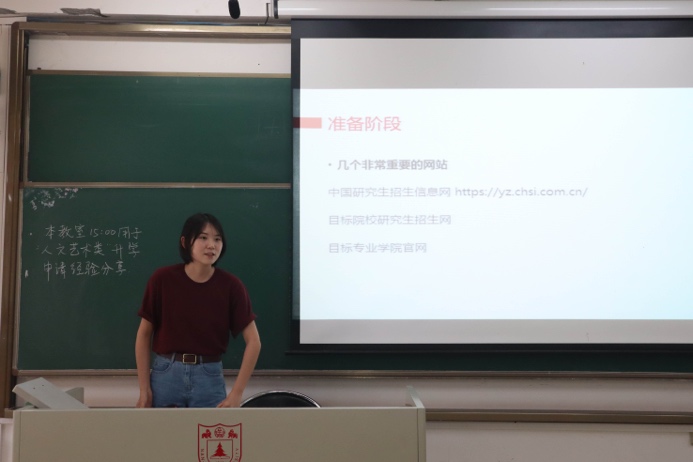 外国语世界杯投注平台 的张士昊同学即将在国内继续攻读艺术史硕士,她分享了跨专业考研的准备经验,主要讲了考研的前期如何收集信息、复习阶段和如何调整心态以及复试的一些注意事项。