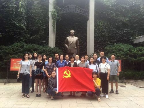 梅园新村纪念馆由中共代表团办事处旧址、国共南京谈判史料陈列馆、周恩来铜像、周恩来图书馆等组成,属于近现代历史遗迹及革命纪念建筑物。梅园新村是中国共产党和国民党政府谈判的最后一站,是中共党史重要的一页,是一座永远矗立在人们心中的历史丰碑。教工党支部和学生党支部代表一行首先举行党旗下“重温入党誓词”的集体宣誓活动。在肃穆的周总理雕像下,伴随着庄严、整齐的誓词,每个人都仿佛回到自己入党伊始那热血沸腾的时光,也必将“不忘初心、继续前进”。