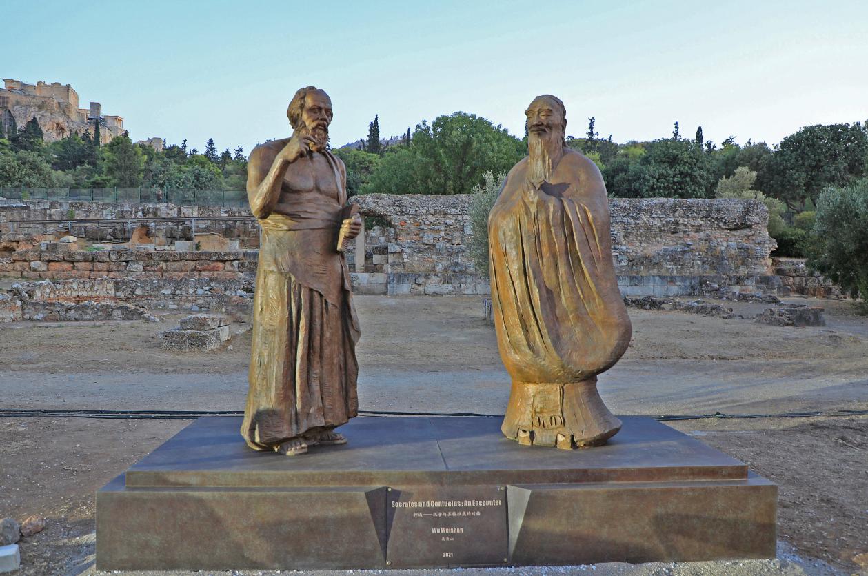 吴为山 《神遇——孔子与苏格拉底的对话》  青铜 2021年