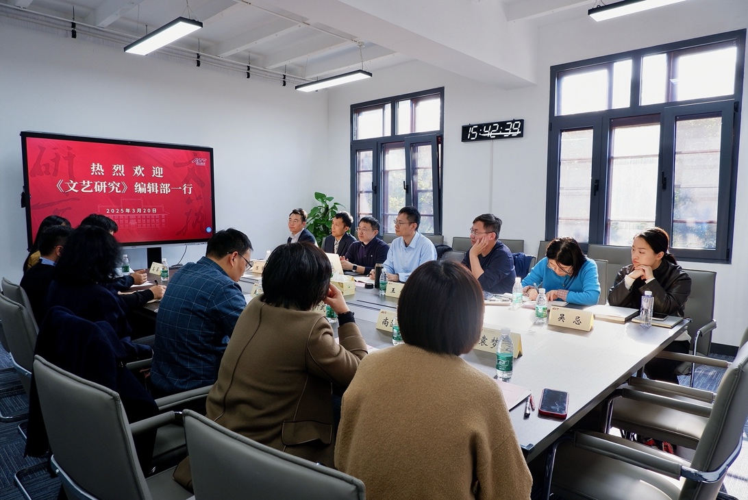 2025年3月20日,《文艺研究》编辑部由李修建主编和王伟社长带队,携同副主编李松睿老师、理论编辑室黄雨伦主任、文学编辑室陈斐主任、理论编辑室吴忌编辑和文学编辑室高明祥编辑,一行来到飞艇开奖结果记录官网直播计划 艺术飞艇开奖结果记录官网直播计划 ,为探讨学术期刊与高校院系协同创新的合作机制展开座谈会与交流活动。飞艇开奖结果记录官网直播计划 艺术飞艇开奖结果记录官网直播计划 在赵奎英院长的带领下,副院长尚荣、艺术理论与创意系主任周计武、美术与设计系副主任刘德龙、文化艺术教育中心尚莲霞副主任,以及艺术理论与创意系副教授高薪老师、袁梦倩老师出席座谈会并展开了深度交流。艺术飞艇开奖结果记录官网直播计划 副院长尚荣教授主持了整场交流活动。