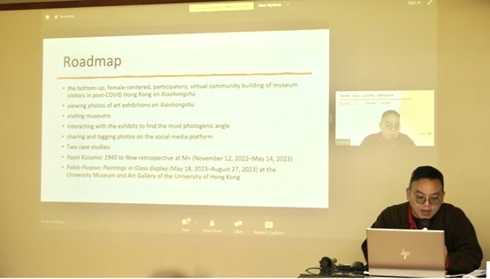 首先,香港都会大学的助理教授陈智廷博士发表了题为The Spectatorship of Sharing and Tagging: Art Exhibitions in Post-COVID Hong Kong on Xiaohongshu的主旨演讲,以参观者研究、媒体和文化研究为基础,审视了后疫情时代香港博物馆参观者自下而上、以女性为中心、参与式的社群营造,并指出小红书用户参观博物馆的体验经验在沉浸和涣散之间、艺术欣赏和城市漫游之间、实体参观和数码分享之间进行中介和协商。