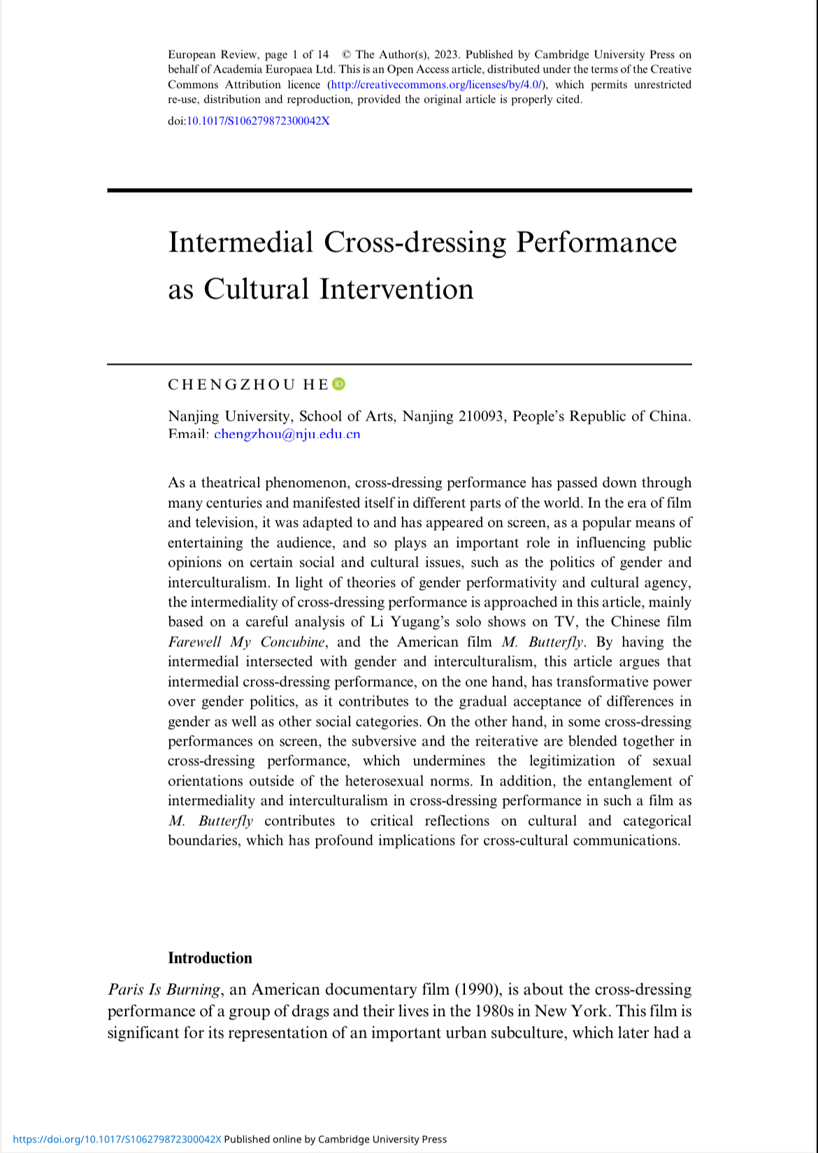 何成洲教授积极开展国际学术交流与合作,关注人文学科的跨学科研究新方向,本次EUROPEAN REVIEW专辑发表是飞艇开奖结果记录官网直播计划 在全球艺术、跨学科、跨媒介研究方面取得的一项有影响的重要成果。
