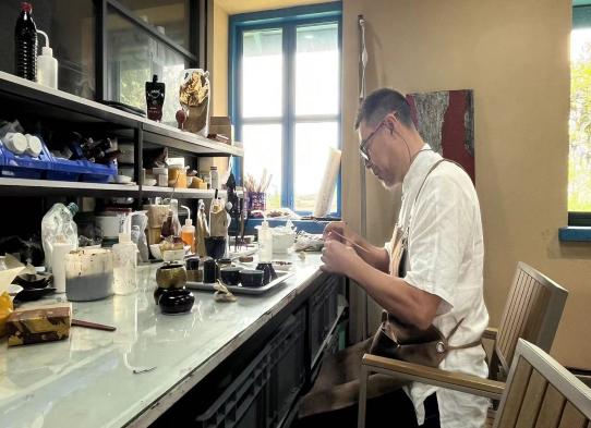4月17日,在陆庆龙老师的带领下,师生一同了解当地非遗。“地戏面具非遗传承人”冯光超,“大漆工艺师”张大伟、“兵工匠”刘吉武、“胡一雕”胡家文、“清镇瓜灯省级非遗传承人”黄国林等与师生交流探讨。据了解,“清镇瓜灯雕刻”起源于明洪武年间,距今已有600多年历史,2009年起先后被列为贵州省和贵阳市非物质文化遗产名录。在实地走访大漆器工作室时,同学们认真观察了漆画的制作过程:裱布、批灰、肌理、髹漆、打磨、推光、揩清。参观完毕后,师生就如何推进非遗传承、蒙安夕舍建设、艺术如何赋能乡村展开交流与讨论。