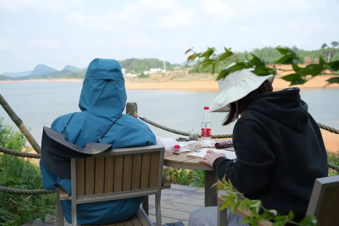 师生一行在右二村村支书王常友、蒙安夕舍民宿主理人王庆能等带领下参观了红枫湖、露营地、晚樱园、茶园、屯堡文化据点等地,熟悉了解右二村及周边情况。这里充满了原生态的自然风光和淳朴民风,在这片宁静土地上,师生们感受到了一种与城市截然不同的氛围,感受着大自然的呼吸,用心观察、细心记录身边的一草一木、一砖一瓦。