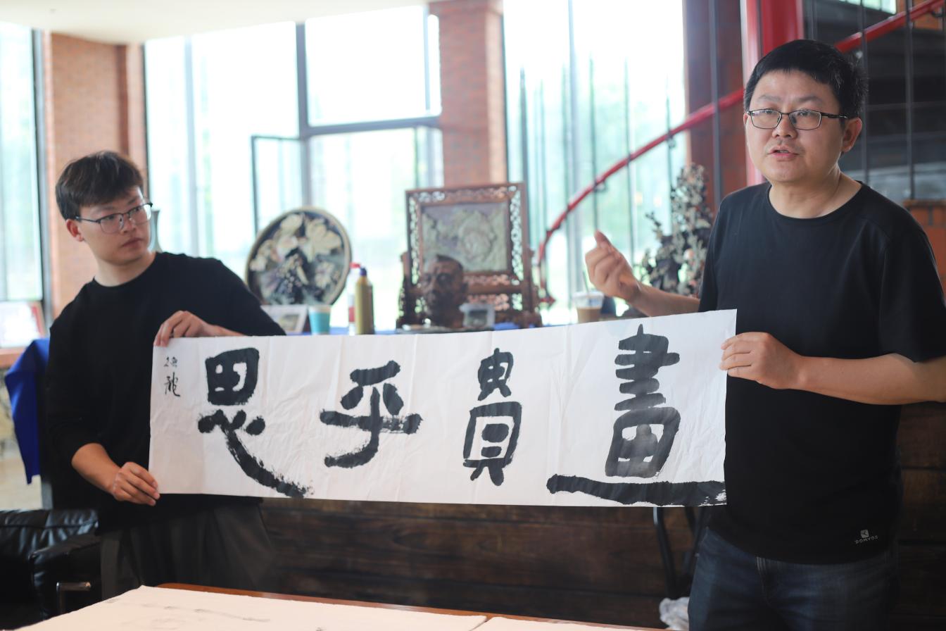 师生一行了解了当地非遗文化,“地戏面具非遗传承人”冯光超,“大漆工艺师”张大伟、“兵工匠”刘吉武、“胡一雕”胡家文、“清镇瓜灯省级非遗传承人”黄国林等与师生交流探讨。师生就如何推进非遗传承、蒙安夕舍建设、艺术如何赋能乡村展开交流与讨论。同学们从“新媒体宣传策略”“文创衍生商品的开发”“艺术与乡村的深度互动”等角度发表了自己的看法和建议。