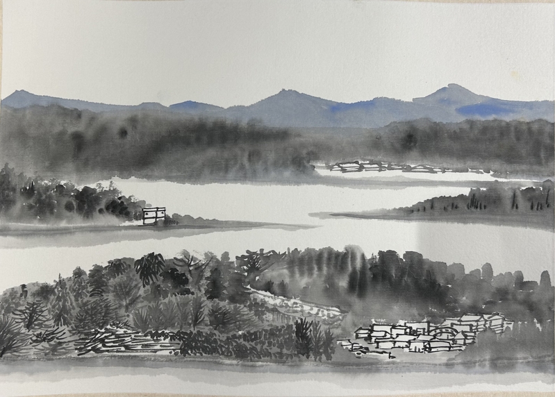 写生考察期间,陆庆龙、刘德龙老师于蒙安乡舍开展公益艺术讲座,吸引当地居民、美术爱好者纷纷驻足。陆庆龙老师以“绘画与生活”为主题,深入剖析了艺术与生活之间的内在关系。他表示,应当将自己的情感、思想和观念融入作品中,从而赋予艺术作品更高的审美价值和精神内涵。刘德龙老师以“艺术学习的策略与方法——以书画临摹为例”为主题,呼吁大家关注“如何对待传统经典”问题,并结合自身经验讲述了书画临摹的要点,最后为大家指出“临仿—临变—临创”的学习方法与策略。