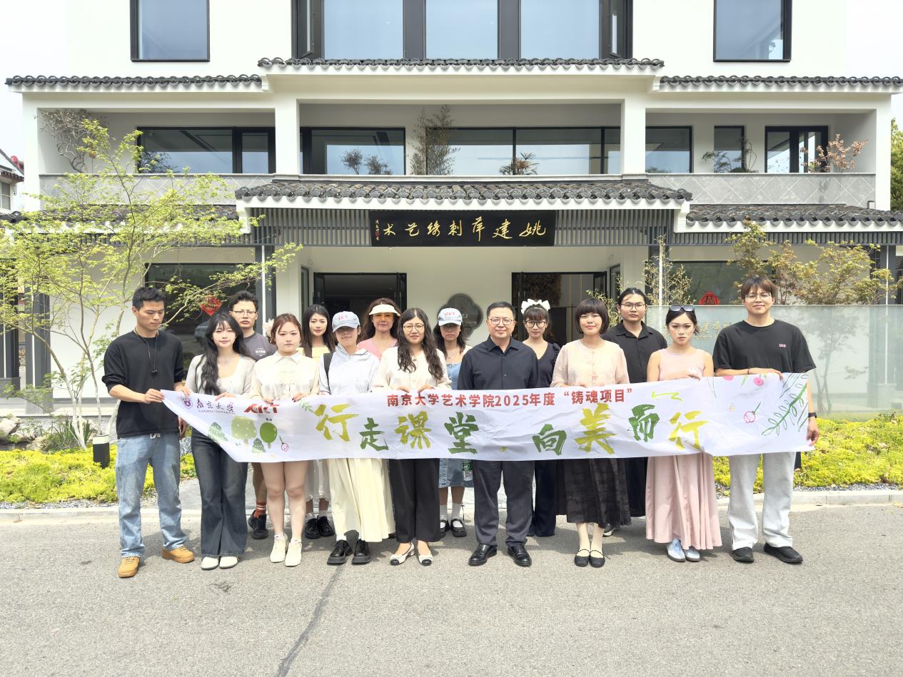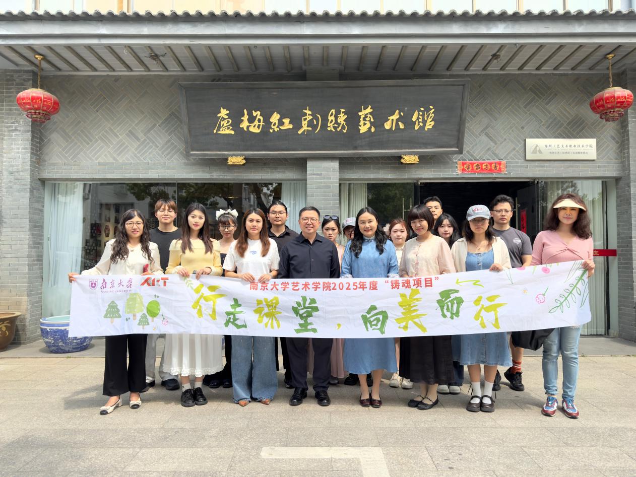 院长赵奎英、副院长尚荣、艺术理论与创意系特聘研究员袁梦倩、研究生辅导员陈小青带领师生团队再次踏上新的征程,并邀请江苏省工艺美术行业协会常务副会长兼秘书长宋建根作为随队指导,前往苏州开展研学活动。苏州,织就中华文化璀璨华章,素有“丝绸之府”“锦绣之地”等美誉。此次研学聚焦历史文化、非遗工艺等主题,旨在通过实地考察、文化体验与学术交流的紧密结合,引导青年学子在历史文物中探寻文化之根,在非遗工艺中品味匠心独运,在艺术展览中领悟精神力量,为新时代美育与文化传承注入青春力量。