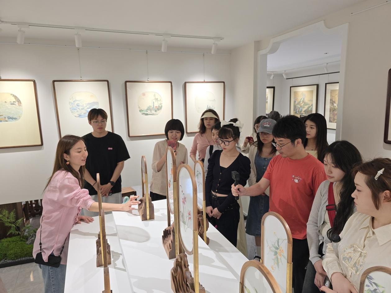 讲解员娓娓道来,深入浅出地介绍每一件珍贵展品背后的历史与文化故事,那些精美的刺绣与华丽的服饰,展现了古代工匠的精湛技艺;那些温润如玉的器物,经过岁月的洗礼,更显细腻光泽。师生们仿佛与古代艺术家们进行了一场跨越时空的对话,感受着传统书画笔墨之间抒发的情感与思想,领略中国传统文化的博大精深与独特魅力。参与学生表示:“此次参观活动不仅是一场视觉的盛宴,更是一次知识的汲取与心灵的滋养。对于我们艺术专业的同学而言,苏州博物馆宛如一座取之不尽的灵感宝库。”在这里,他们近距离接触到了传统艺术的精髓,感受到了不同艺术形式在历史长河中的演变与发展。