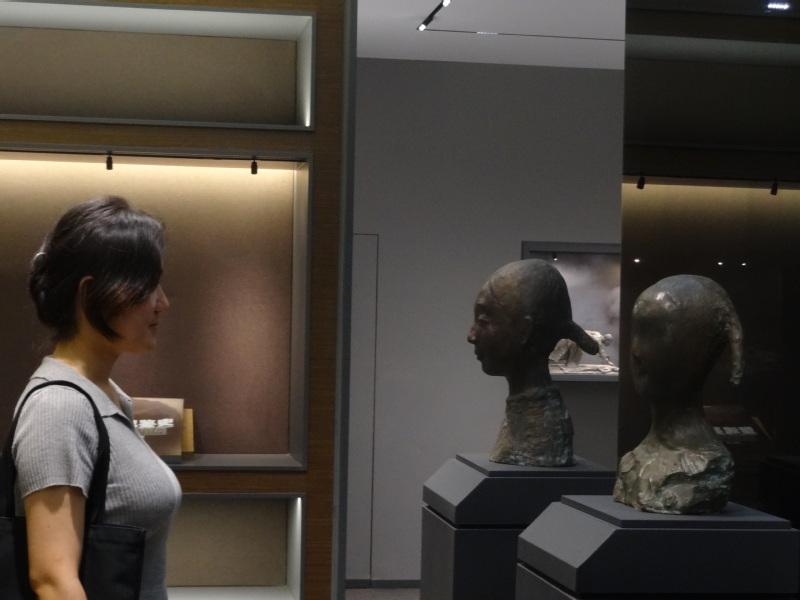 参观过程中,党员们围绕“如何以艺术载体传承中华文明”展开热烈讨论。看到《饶宗颐》塑像中大师平和儒雅的面容,大家谈道:“这尊雕塑不仅塑造了学者形象,更展现了当代知识分子接续文脉的使命担当。”看到《侵华日军南京大屠杀遇难同胞纪念馆组雕原型小稿》中母亲怀抱着死去的孩子仰天长啸的悲怆造型时,大家深刻认识到铭记历史、守护和平的意义。在沉浸式体验中,党员们切实体会到雕塑艺术以形写神、以美传魂的独特魅力,更坚定了用艺术语言讲好中国故事、传承中华文明的决心。
