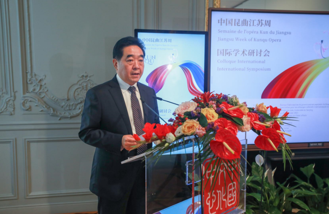 江苏省委常委、宣传部部长、省对外文化交流协会会长张爱军在国际会议上致辞。他说,中华文明是世界四大文明之一,延绵至今、未曾中断。它具有突出的连续性、创新性、统一性、包容性、和平性,决定了中华文化对世界文明兼收并蓄的开放胸怀。被誉为中华文化瑰宝的中国昆曲,植根于源远流长的历史文化传统,在传承中创新,在创新中发展,与不同文化相遇相融,为建设中华民族现代文明、丰富世界文化宝库增添了瑰丽的一笔。作为“中国昆曲江苏周”系列活动之一,本次研讨会围绕“跨文化对话与文明互鉴”这一主题,深入探讨中国昆曲的历史内涵、时代意义和世界价值,对于推动不同文明交流互鉴具有重要意义。