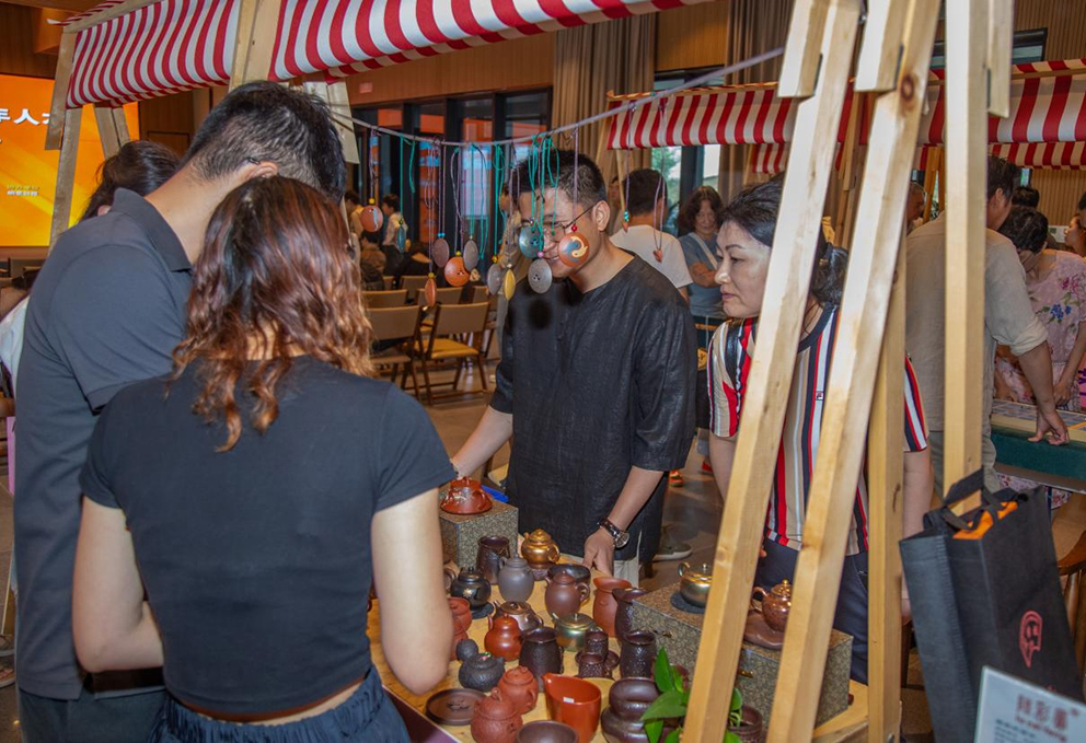 南京市文化和旅游局副局长张思明、南京市文联副主席李志平、浦口文旅集团总经理侯利旺、中国工艺美术大师张清雷、浦口区文联副主席郭丽萍为艺术市集揭幕