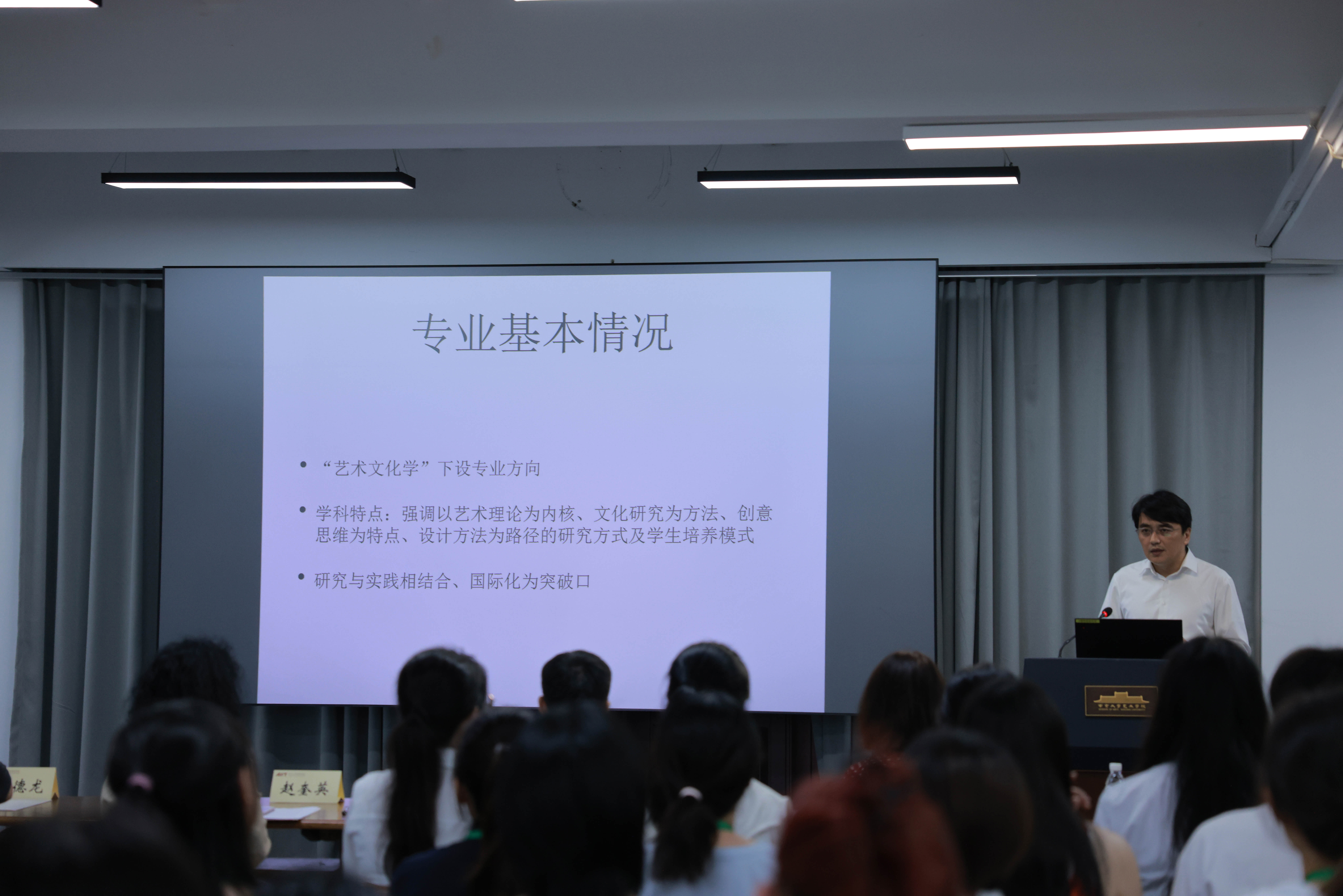 祁林教授介绍了艺术传播方向的情况。首先他阐明了此方向与艺术文化学的“亲缘关系”,指出了该方向的学科特点,即强调以艺术学理论为内核、文化研究为方法、创意思维为特点、设计方法为路径的研究方式和学生培养模式,比较重视实践和国际化。呈现了艺术传播方向的师资情况后,他也介绍了此方向的老师们曾在艺术飞艇开奖结果记录官网直播计划 “沃土”上践行的跨学科尝试,譬如开设艺术与文化创意辅修项目、举办“AI与中法视觉文明互鉴”“AI与中华美学气韵再生”美育创新实践展等。最后他以“to be is to do”作结,希望同学们既能做好学问,也能尝试各样的项目或活动,收获更为精彩的学术生涯。