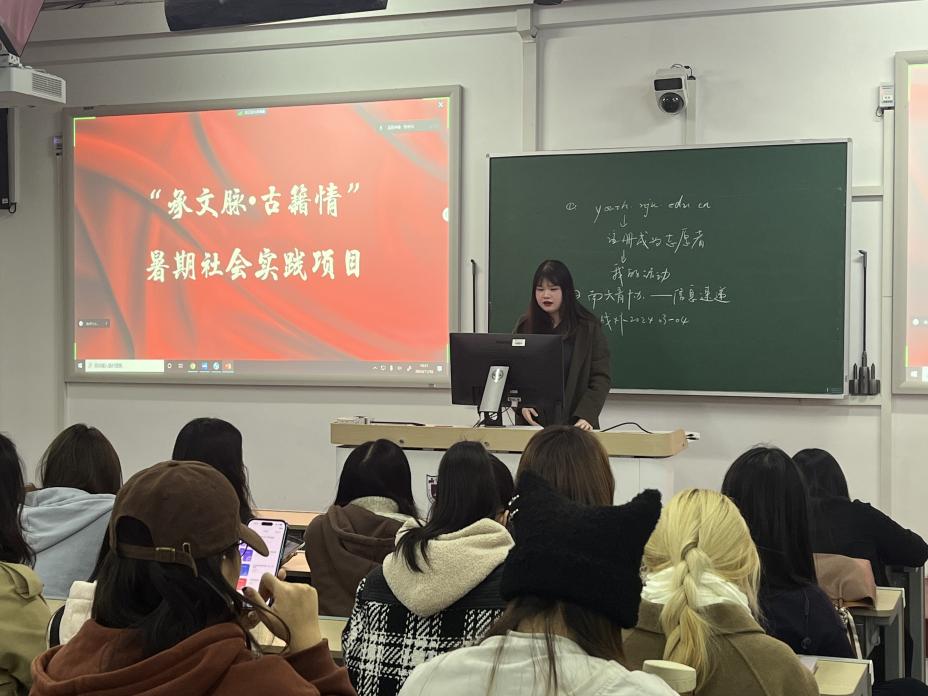 马孟喆同学重点介绍“承文脉·古籍情”暑期社会实践项目,该项目覆盖南京、扬州两地,通过走访非遗传习所、实地调研、文化创作等方式,记录古籍修复技术,回溯历史长流。马孟喆同学总结道:“对古籍的重视和复原,不应该仅仅局限在文字上,可以挖掘出更多的表现形式。如何让古籍里蕴藏的灿烂文化在日常生活中得到延续和发展,将传统文化与现代元素结合起来,是当下我们需要关注和研究的重要课题。”参与社会实践的青年同学在尝试和体验古籍修复和传承技术后更加坚定文化自信,寻求属于当代年轻人的新奋斗方向。
