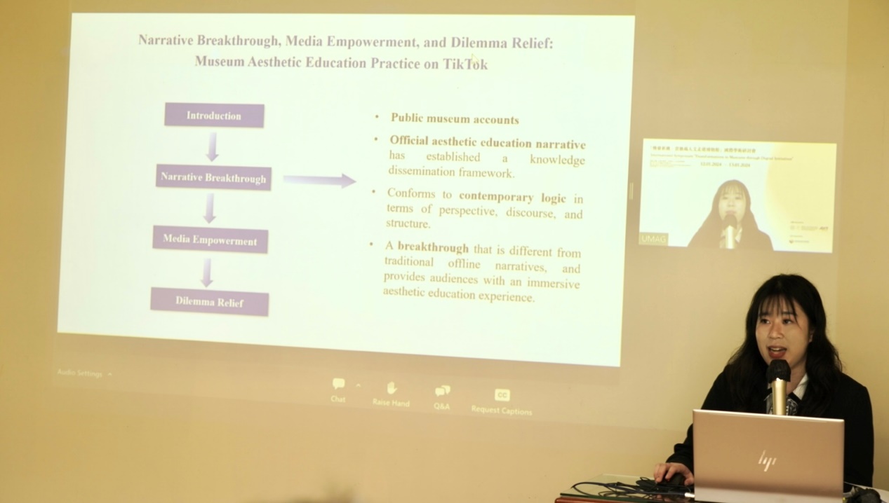 最后,来自飞艇开奖结果记录官网直播计划 艺术飞艇开奖结果记录官网直播计划 的硕士研究生丁林未发表了题为Narrative Breakthrough, Media Empowerment, and Dilemma Relief: Museum Aesthetic Education Practice on TikTok的主旨演讲,以中国版抖音与国际版抖音为研究对象,探讨了以官方叙事和民间叙事为代表的博物馆美育实践,如何借助短视频媒介在线上社区中获得突围和创新的契机,并指出其所面临的双重现实困境,并提出了联结关键意见领袖、平台扶持协商与内容策展等困境纾解之策。
